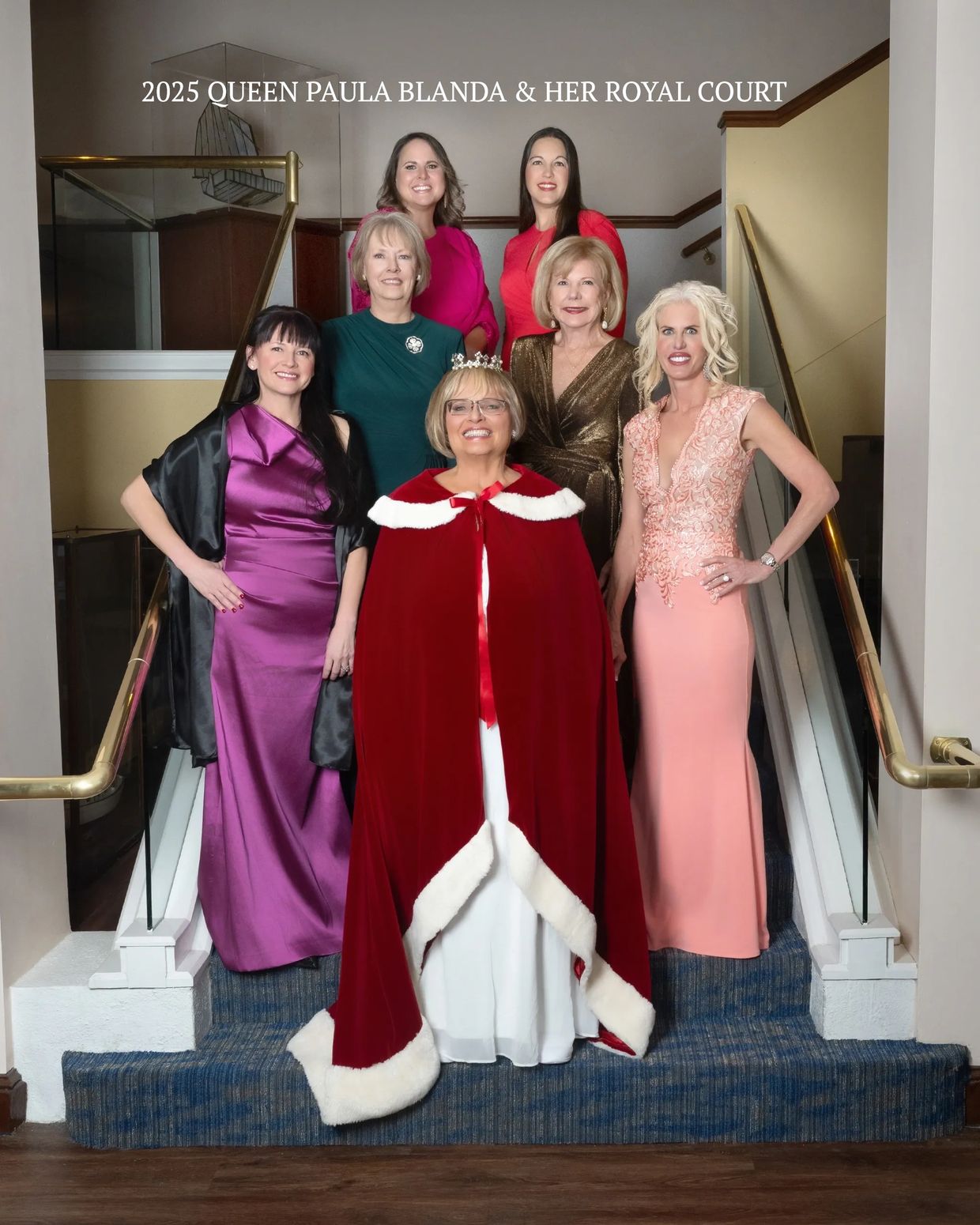 Pictured: 2025 ROYAL COURT: QUEEN PAULA BLANDA, Princess Lauren Brigman, Princess Simone Bennett DeLoach, Princess Jennifer (Jenna) Malowany, Princess Melissa Sparks, Princess Nicole Thomas, and Princess Judith Whitney